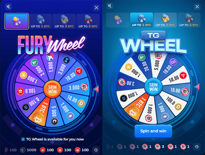 - Fury Wheel: Spin every 12 hours to win BFG or other crypto, depending on VIP level.